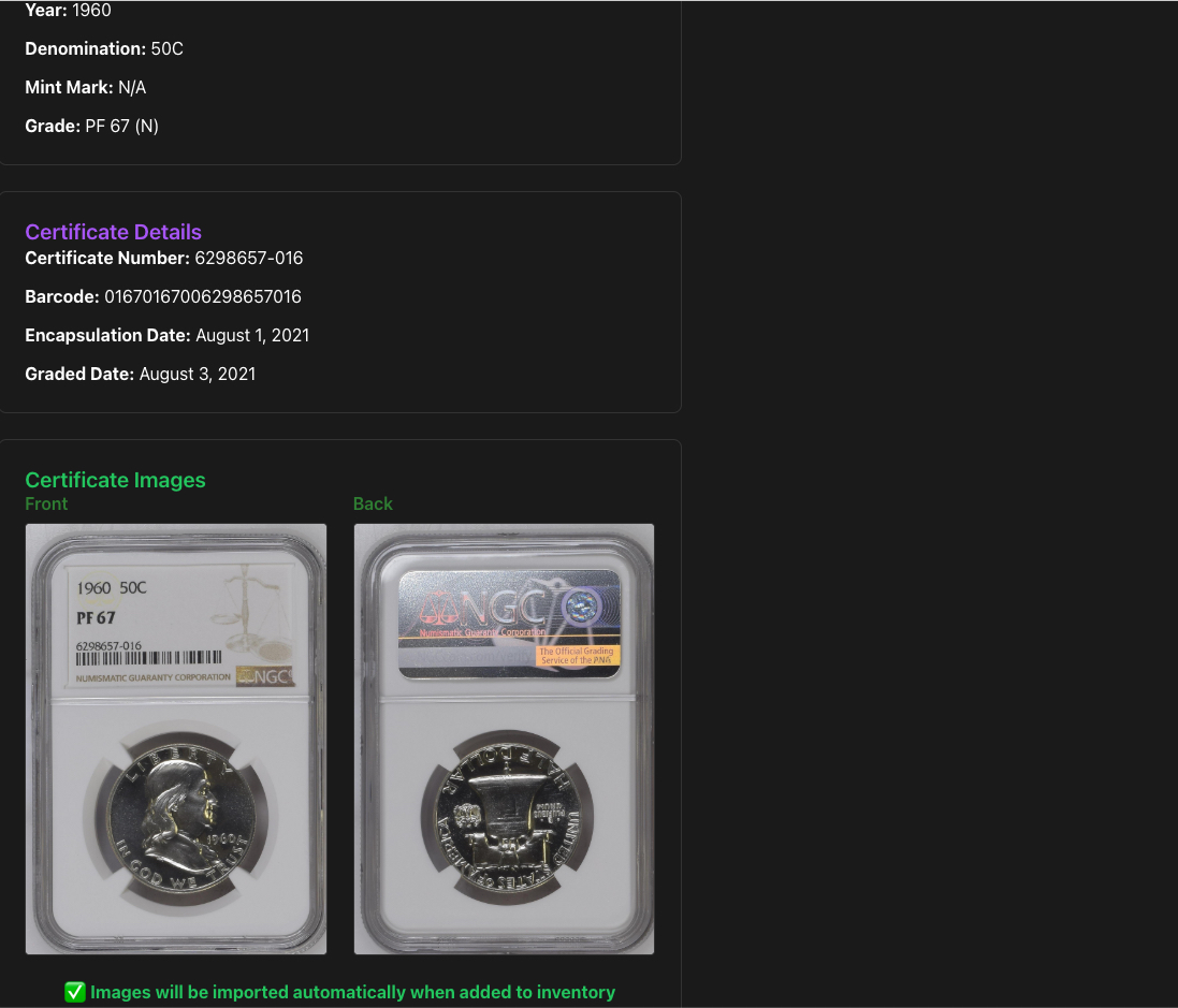 No app, scanner, or AI tool can reliably determine the value of a raw coin on the fly. While coin collecting software can help you organize your collection and track market data, the value of a raw coin ultimately comes down to expert evaluation and buyer judgment.