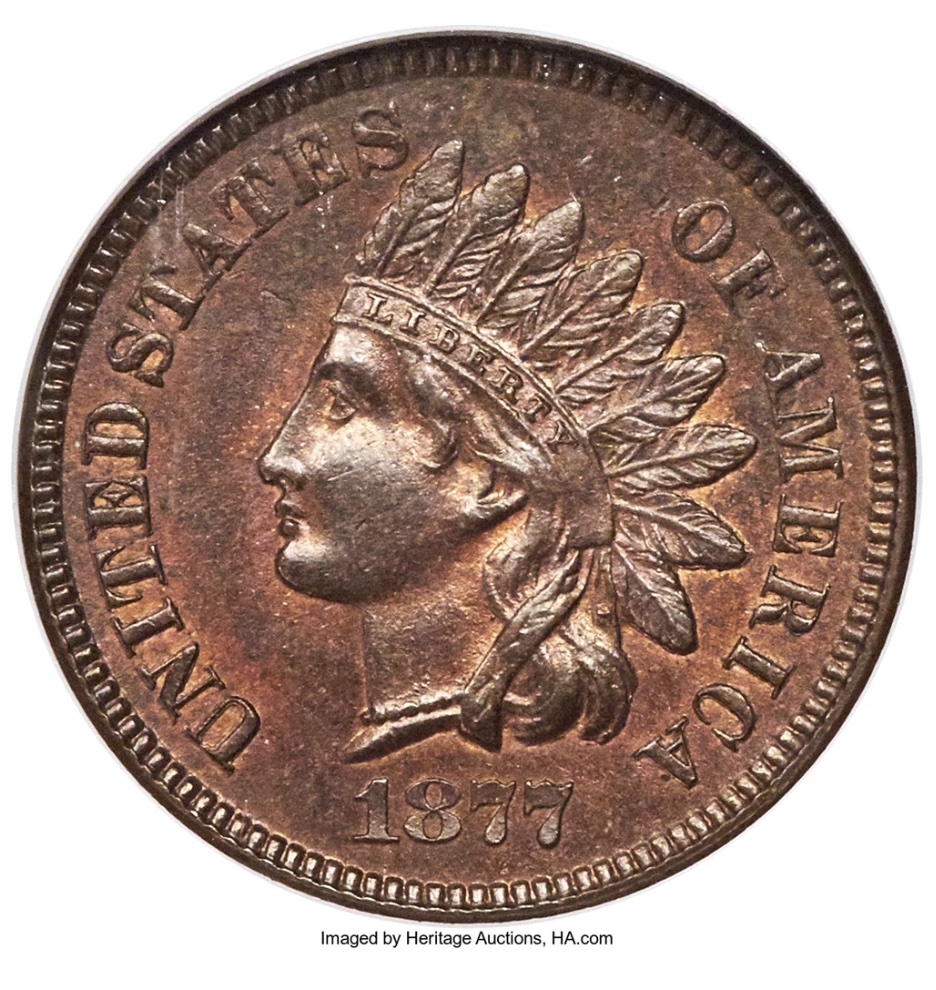 With a mintage of only 852,500 coins struck, the 1877 is the lowest mintage Philadelphia Mint struck Indian Head Cent and is considered THE key date of all Indian Head cents. This rarity stems from economic conditions during the post-Civil War recession.